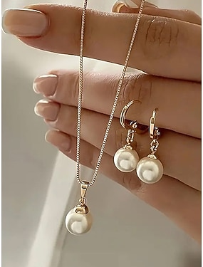 Halsband och örhängen i konstpärlor för kvinnor med gulddetaljer, eleganta julsmycken för högtider