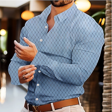 Herr Skjorta Lutning Ledigt Utomhus Blå Gul Rubinrött Grön Långärmad Hög krage Höst vinter Kläder Mönster