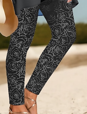Dam Damasker Semester Vintage Mode Fullängd Hög midja Blommig Grafisk Tryck Håller värmen Mjuk Andningsfunktion Hög Elasisitet Ledigt Dagligen Semester Svart och vit Vår Höst Vinter Smal passform
