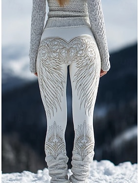 Dam Viking Damasker Mysiga leggings Semester Vintage Etnisk Stil Fullängd Hög midja Grafisk Djur Tryck Bekväm Elastisk Ledigt Dagligen Utomhus Grå Vår Höst Vinter Smal passform