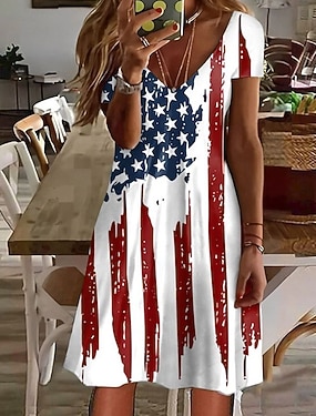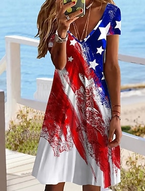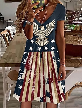 Självständighetsdagen Patriotisk Kvinnors T-shirt Bomullströja Grafik Djur Flagga Avslappnad Kortärmad Rundhalsad Vanliga Toppar Daglig Tryck Svart Sommar
