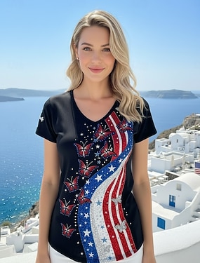 Amerikanska självständighetsdagen Dam T-shirt Mönster Grafisk Amerikanska flaggan Stylish Klassisk Ledigt Kortärmad V-hals Vanliga toppar Dagligen Utekväll Blå Svart Sommar Vår