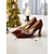 vinröda klackar i konstläder för kvinnor, brogue-design, klackar för kattungar, elegant stil från 1950-talet, perfekt för kontorskläder och kvällsevenemang