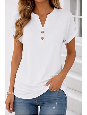 Dam T-shirt T-tröja Knappar Slät Mode Stylish Klassisk Kortärmad Rund hals Vanliga toppar Dagligen Utekväll Helgen Blå Vit Gul Rodnande Rosa Grön Sommar Vår
