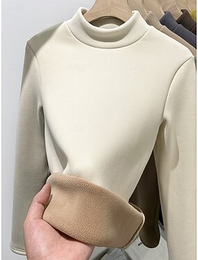 Dam Blus Ensfärgat Stylish Grundläggande Ledigt Långärmad Polokrage Vanliga toppar Dagligen Svart Gul Brun Kaki Mörkgrå Vår Höst Vinter