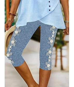 Damleggings Capri Byxor Hög Elasticitet Semester Vintage Mode Kalsonglängd Mid Waist Blommig Grafisk Tryck Andningsbar Mjuk Semester Avslappnad Daglig Robin's Egg Blue Svart Djupt Blå Ljus Blå