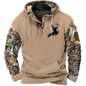 Herr Kamouflage Hjort Huvtröja Tröja Cowboy Ledigt Långärmad Huva Streetwear Jakt Brun Grön Kaki Ficka 3D-utskrift Höst Vinter Designer S M L XL XXL XXXL