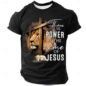Bibel Mäns Kristen T-shirt Det Finns Kraft I Jesu Namn Lejon Och Lamm Kors Grafiska Tee Tro Religiös Kortärmad Oberoende Kläder Mode