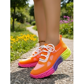 röda flyknit damsneakers med grov sula – andningsbara snörskor för avslappnad streetwear och gymträning