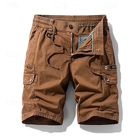 Herr Cargobyxor Cargo-shorts Shorts Casual shorts Ficka Elastisk midja Slät Enfärgat Knelängd Ledigt Utomhus Streetwear Mode Streetwear 다크 카키 Vin Oelastisk