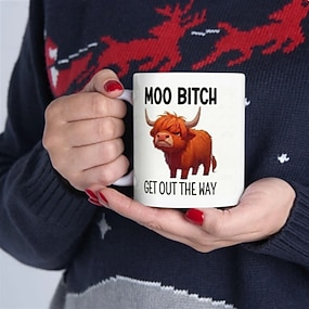 Mug med "moo bitch, gå ur vägen", rolig 350 ml/11 oz keramisk ko-kaffekopp för mjölk, varmt te eller varm choklad, unik tekopp med djurmotiv för hemmakontor, presenter till kollegor och vänner
