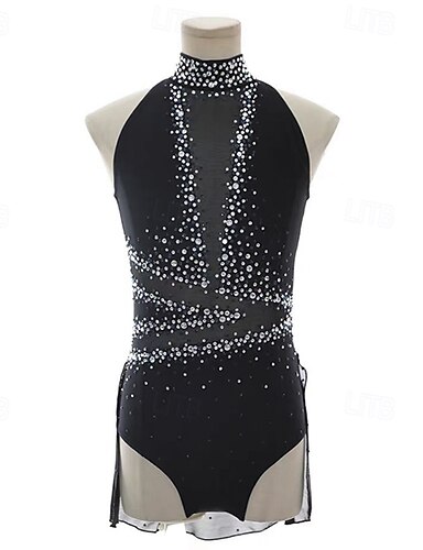 Klänningar till konståkning Dam Flickor Skridskor Klänningar Svart Lappverk Öppen Rygg Maska Elastan Elastisk Träning Professionella Tävling Skridskoplagg Håller värmen Kristall / Strass Stenar Ärmlös
