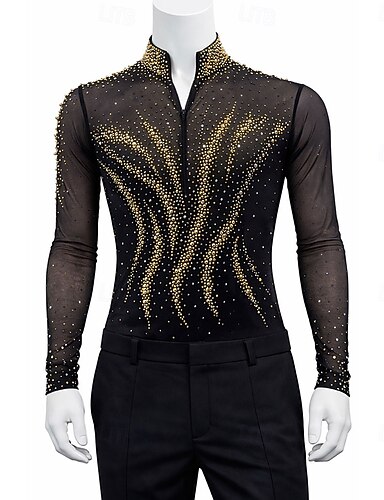 Topp för konståkning Herr Pojkar Skridskor Toppar Svart / Guld Lappverk Elastan Hög Elasisitet Träning Tävling Skridskoplagg Klassisk Kristall / Strass Stenar Långärmad Skridskoåkning Konståkning