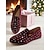 Damskor i vinröda sammetsfärgade slip-on-skor med nitar, snygga och bekväma, perfekta för vardagskläder, högtidssammankomster och julutflykter.