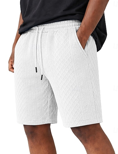 Herr Shorts Casual shorts Jacquard Ficka Slät Strukturerad Komfort Andningsfunktion Över Knät Ledigt Utomhus Strand Semester Mode Svart Vit Microelastisk
