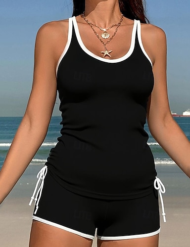Dam Baddräkt Tankini 2 st Solid färg Ultralätt (UL) UV-skydd Elastisk Ärmlös Badkläder Surfing Snorkelfenor Sommar