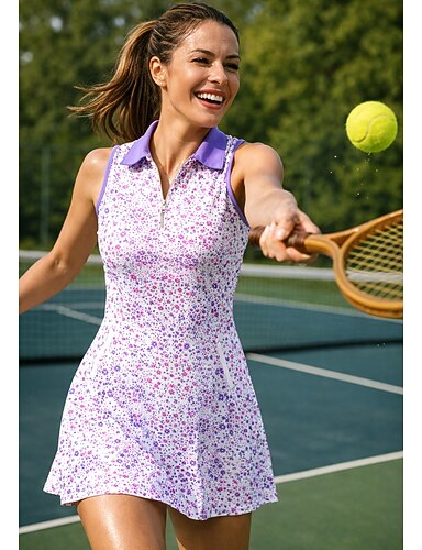 Dam Blommig Tennisklänning Sportklänning Ärmlös Mönster Andningsfunktion Volleyboll Tennis Golf Polokrage Dragkedja Klänningar Violett Svart med Vitt Mörk Marin Tenniskläder