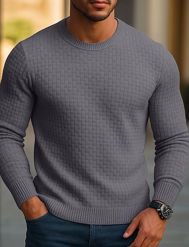 Herr Pullover tröja Stickad tröja Ribbad Sticka Vanliga toppar Stickat Slät Rund hals Mode Grundläggande Semester Dagliga kläder Kläder Höst Vinter Svart Grå S M L