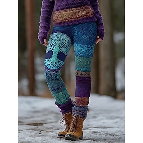 Kvinnors Viking Boho leggings semester vintage etnisk stil hel längd hög midja grafiskt träd mjuk bekväm stretchig formell utomhus semester röd grön vår höst vinter slim fit