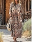 Dam Maxiklänning Skiftklänning Ledigt Boho Dagligen Helgdag Paisley Långärmad Rund hals Ljusbrun Höst Vinter