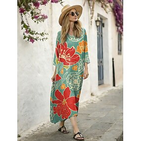 Kvinnors maxiklänning linne-liknande andningsbar lätt kaftan 3/4 ärm crew hals avslappnad shift klänning A-linjeformad klänning boho vardag semester dejt blommig mörkgul ljusrosa gul ljusgrön