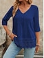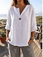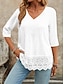 Dam Skjorta Linneinspirerade set Blus Bomullskjorta Spets Lappverk Ensfärgat Grundläggande Ledigt 3/4 ärm V-hals Vanliga toppar Dagligen Vit Sommar Vår
