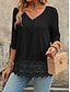 Dam Blus Spets Lappverk Knappar Ensfärgat Elegant Stylish Ledigt 3/4 ärm V-hals Vanliga toppar Dagligen Blå Svart Vit Rodnande Rosa Vår Höst