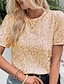 Dam T-shirt Summer Tops Paljetter Lappverk Ensfärgat Elegant Vintage Stylish Kortärmad Rund hals Vanliga toppar Dagligen Utekväll Helgen Rosguld Svart och grått Svart Vit Rodnande Rosa Sommar Vår