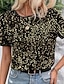 Dam Skjorta Blus Knappar Mönster Blommig Stylish Modern Ledigt Kortärmad Tröjkrage Vanliga toppar Dagligen Helgdag Utekväll Brun Sommar Vår