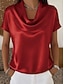 Dam Skjorta Elegant Satin topp Blus Slät Elegant Stylish Kortärmad Tröjkrage Vanliga toppar Dagligen Helgdag Utekväll Svart Vit Champagne Gul Vin Sommar Vår