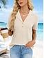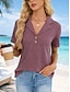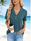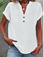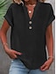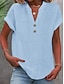 Dam Blus Knappar Ensfärgat Stylish Ledigt Kortärmad V-hals Vanliga toppar Dagligen Blå Svart Vit Rubinrött Aprikos Sommar Vår
