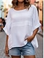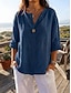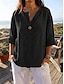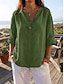 Dam Skjorta Blus 100% Bomuld Ensfärgat Grundläggande Ledigt 3/4 ärm Rund hals Vanliga toppar Dagligen Blå Gräsgrön Svart Vit Ljusgrön Sommar