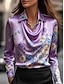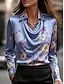 Dam Skjorta Elegant Satin topp Sidentoppar Mönster Draperad Blommig Grafisk Elegant Stylish Ledigt Långärmad Skorstenskrage Vanliga toppar Dagligen Arbete Helgdag Blå Purpur Vår Höst