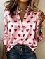 alla hjärtans dag Dam Skjorta Knappar Mönster Blommig Grafisk Elegant Stylish Modern Långärmad Tröjkrage Vanliga toppar Dagligen Arbete Vit och röd Svart Vit Rodnande Rosa Ljuslila Sommar Vår