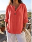 Kvinnors Blus Linne-liknande Andningsbar Lätt Elegant Bohemia Aktiv Daglig Semester Strand Användning Rosa Röd Blå Brun Sommar Vår Höst