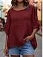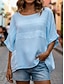 Dam Blus Ensfärgat Stylish Ledigt Halvlång ärm Rund hals Vanliga toppar Dagligen Blå Vit Gul Rubinrött Marinblå Sommar Vår