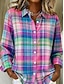 Kvinnors Skjorta Linne-liknande Andningsbar Lätt Grafisk Regnbåge Elegant Bohemia Vintage Lång ärm Skjorta Krage Regular Toppar Arbete Dagliga Knappar Tryck Rosa Lila Orange Vår Höst Vinter