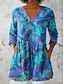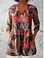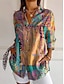 Kvinnors Blus V-Hals Lager Volang Ärme Toppar Blommig Grafisk Bohemisk Vintage Dags 3/4 Längd Ärme Vanliga Toppar Dagssemester Semesterkläder Tryck Rosa Röd Blå Himelsblå Orange Sommar Vår Höst