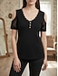 Dam Skjorta Topp med öppna axlar Blus Spets toppar Lappverk Knappar Slät Vintage Klassisk Ledigt Kortärmad V-hals Vanliga toppar Dagligen Helgdag Utekväll Svart Sommar Vår