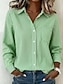 Dam Linneskjortor i bomull Knappar Ensfärgat Stylish Ledigt Långärmad V-hals Vanliga toppar Dagligen Blå Purpur Grön Kaki Beige Sommar Vår