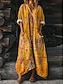 Kvinnors Maxi Klänning Linne Likt Boho Avslappnad Klänning Bohemia Semester Strand Löst Passform Blommig Grafisk Abstrakt 3/4 Längd Ärmar Rund Hals Rosa Lila Orange Sommar Vår Höst