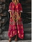 Damernas Maxi Klänning Boho Sommarklänning Skift Klänning Avslappnad Fest Vanlig Passform Grafisk Paisley Tribal Långärmad V-ringad Röd Lila Beige Sommar Vår