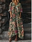 Kvinnors Maxi Klänning A-linjeformad Klänning Passform Och Flare Klänning Vintage Boho Datum Regular Fit Blommig Grafik Lång Ärmar V-Hals Grön Vår Höst Vinter