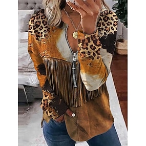 Dam Blus Mönster Fjärdedels blixtlås Leopard Dagligen Stylish Långärmad Rund hals Vanliga toppar Dagligen Utekväll Blå Brun Vår Höst