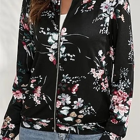 Dam Vardaglig jacka Bekväm Andningsfunktion Dragkedja Mönster Ledigt Blommig Semester Gata Dagliga kläder Utekväll Dragkedja Normal Hög krage Normal Långärmad Ytterkläder Svart Rubinrött Blå Sommar