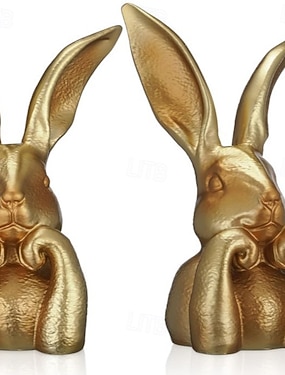 påskharefigur, vintage guldfärgad harestaty i harts, påsktänkande harefigur för bordsdekorationer i hemmet, söt kaninstaty för sovrumshylla och kontorsdekorationer