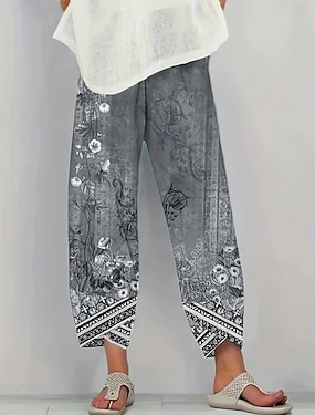 Dam Byxor Semester Vintage Etnisk Stil Fullängd Hög midja Blommig Grafisk Elastiskt midjeband Bekväm Mateial som andas Mjuk Microelastisk Dagligen Utomhus Gata Militärgrön Svart Vit Sommar Vår Lös