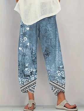 Dam Brett skaft Kinesiska Säckiga byxor Beach Shorts Semester Vintage Etnisk Stil Ankellång Hög midja Blommig Grafisk Tryck Håller värmen Mjuk Andningsfunktion Microelastisk Ledigt Dagligen Semester