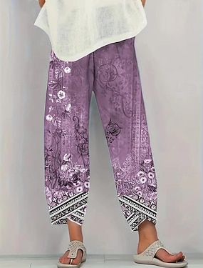 Dam Byxor Damasker Mysiga leggings Ledigt Boho Fullängd Hög midja Blomma Elastisk midja Mönster Mateial som andas Bekväm Elastisk Semester Gata Dagliga kläder Rosa Purpur Brun Grön Vår Höst Normal
