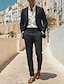 Herr Ledigt Vårbröllop Kostymer Affärsdräkter Spetsslag Svart Marinblå Dagligen Lättvikt Solid färg Skräddarsydd passform 2 delar set Singelknäppt Två knappar